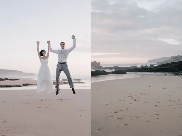 /Foi só o dia mais quente daquele Verão, mas na acalmia do fim do dia fomos brindados (nós e os noivos) com um entardecer sereno e uma maré baixa que fizeram as nossas delícias. Era o primeiro momento em que os noivos estavam sozinhos (porque nós somos invisíveis, claro) depois de uma cerimónia à beira mar.